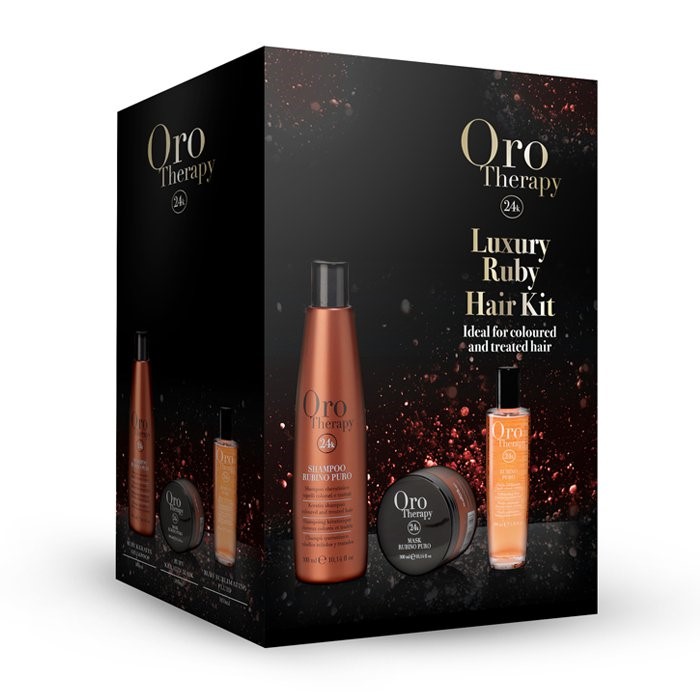 Kit Includes: x1 Oro therapy 24k ruby shampoo 300ml 1x Oro therapy 24k ruby mask 300ml x 1 Oro therapy argan oil treatment 100ml