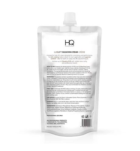 Luxe Lift Bleach Cream delivers up to 9+ levels of lift in a rich, creamy formula that combines strength, control, and care. Its velvety, non-drip texture allows for seamless application and even lightening from root to tip, ensuring beautifully clean, luminous results every time. The conditioning base helps maintain flexibility and softness throughout the lightening process, leaving the hair visibly smooth and radiant